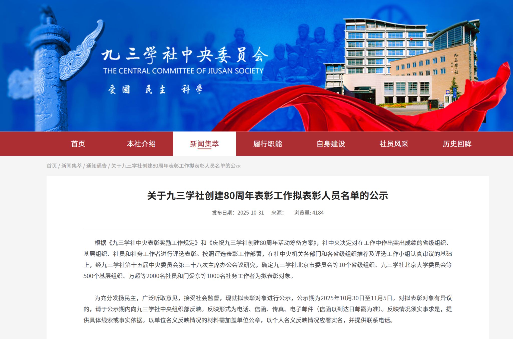 雷竞技raybat竞猜黄炜教授荣获“九三学社创建80周年全国优秀社员”称号