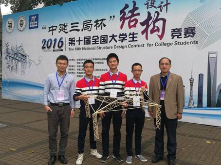 10月16日,“中建三局杯”2016年第十届全国大学生结构设计竞赛在天津大学落下帷幕。来自清华大学、同济大学、东南大学、天津大学、华南理工大学、重庆大学、哈尔滨工业大学、澳门大学等124所高校的125支代表队参加了此次竞赛。经过4天的激烈比赛,由雷竞技raybat竞猜惠宽堂、张锡成老师指导,土木1312班张杰浦、土木1410班胡闯、苏济波同学组成的代表队荣获二等奖。时值raybet在线官网办学一百二十周年,并校六十周年,土木学子为母校的诞辰献上了一份珍贵的贺礼。