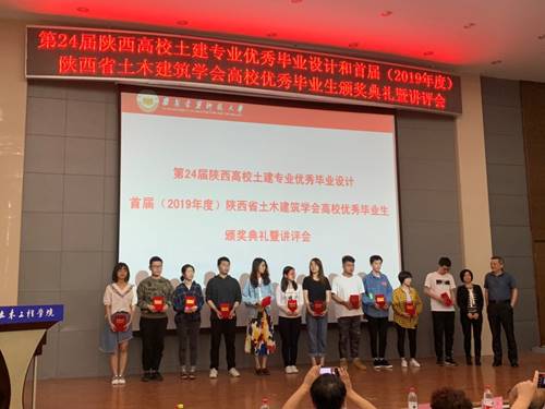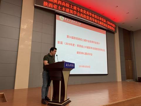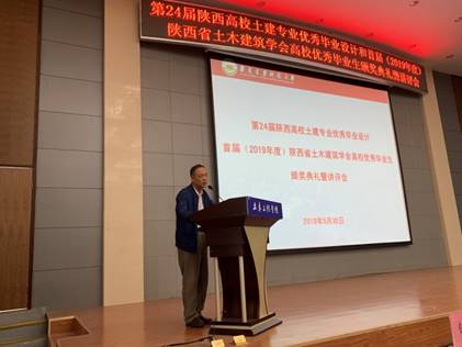 5月30日下午,第24届陕西高校土建专业优秀毕业设计和首届(2019年度)陕西省土木建筑学会高校优秀毕业生颁奖典礼暨讲评会在我校土木楼516报告厅举行。