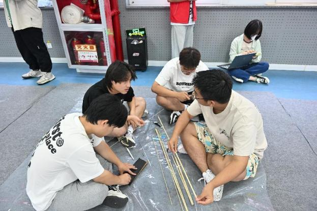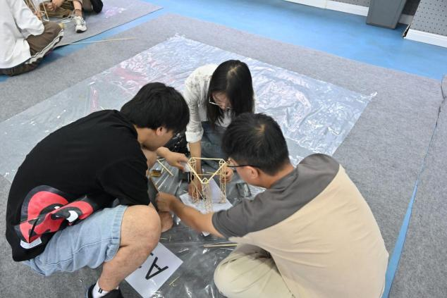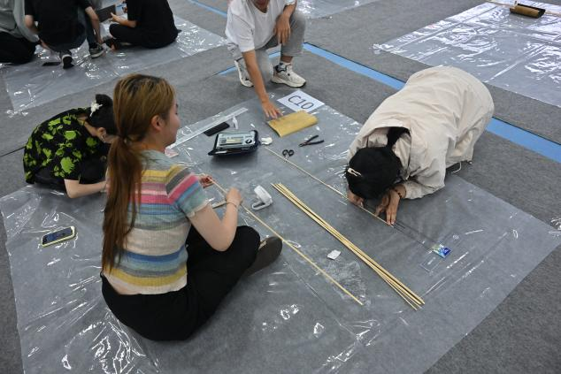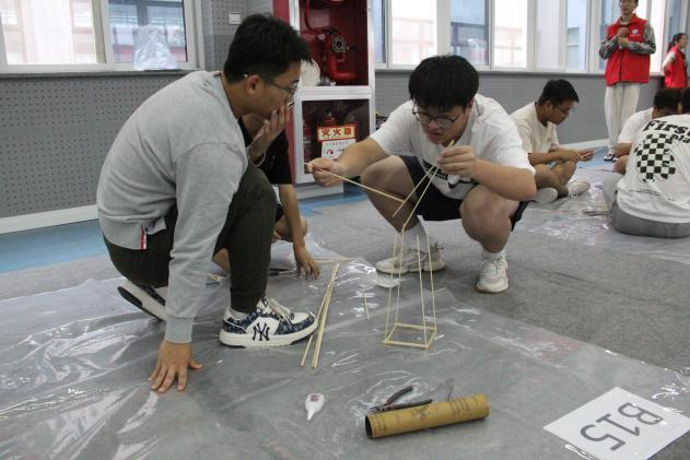 开幕式结束后,比赛正式开始。各参赛小组成员同学们齐心协力、精诚合作、稳扎稳打,通过裁、磨、粘等工艺,使轻薄的竹条变成了一件件精致的承重模型,每一件制作精良、结构合理的作品都饱含着他们辛勤的汗水,闪耀着智慧的光芒,蕴含着对理想的追逐。