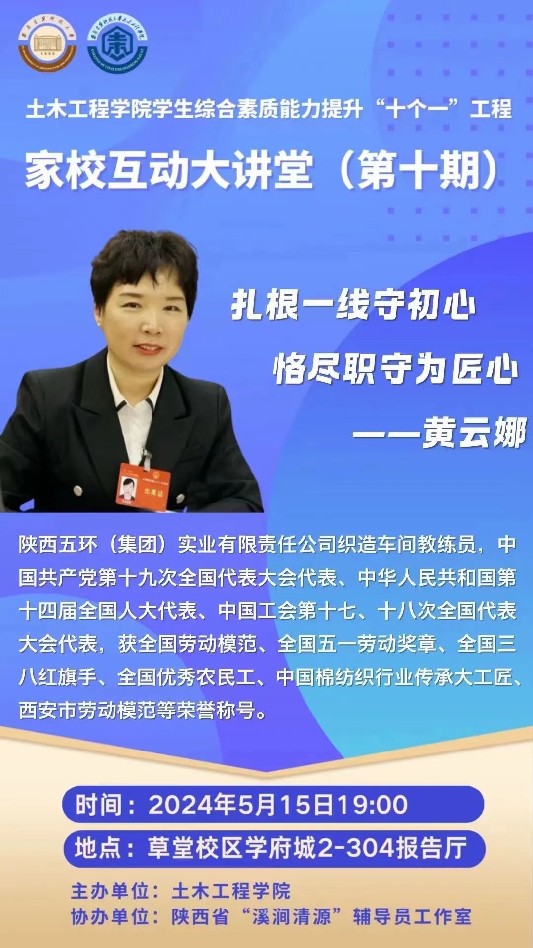 为促进家校互动,邀请学生家长为广大同学讲人生、谈感悟、授技能,学院家校互动大讲堂上新!本次邀请的为我院23级本科生家长黄云娜女士,欢迎有兴趣的同学扫码登录第二课堂进行报名!