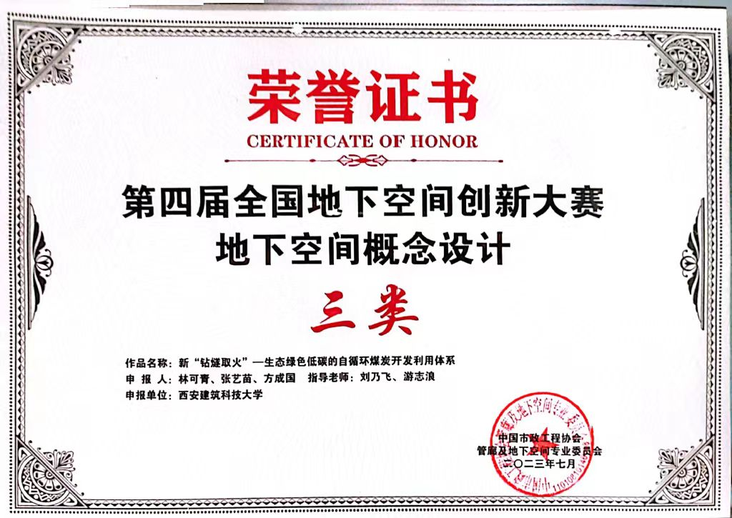 我校获奖作品名称分别为“新钻燧取火——生态绿色低碳的自循环煤炭开发利用体系”和“城市心脏——创新型地下综合蓄输电系统”,团队成员为我校雷竞技raybat竞猜21级城市地下空间工程专业的林可青、张艺苗、方成国和陈建勋,王成,顾一恒,指导老师均为雷竞技raybat竞猜岩土教研室的刘乃飞老师。团队成员在所有获奖选手中年龄最低,从业时间最短。