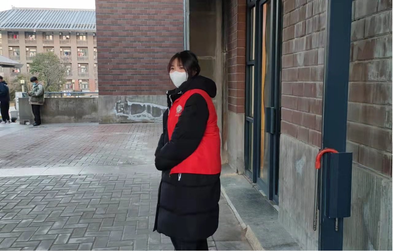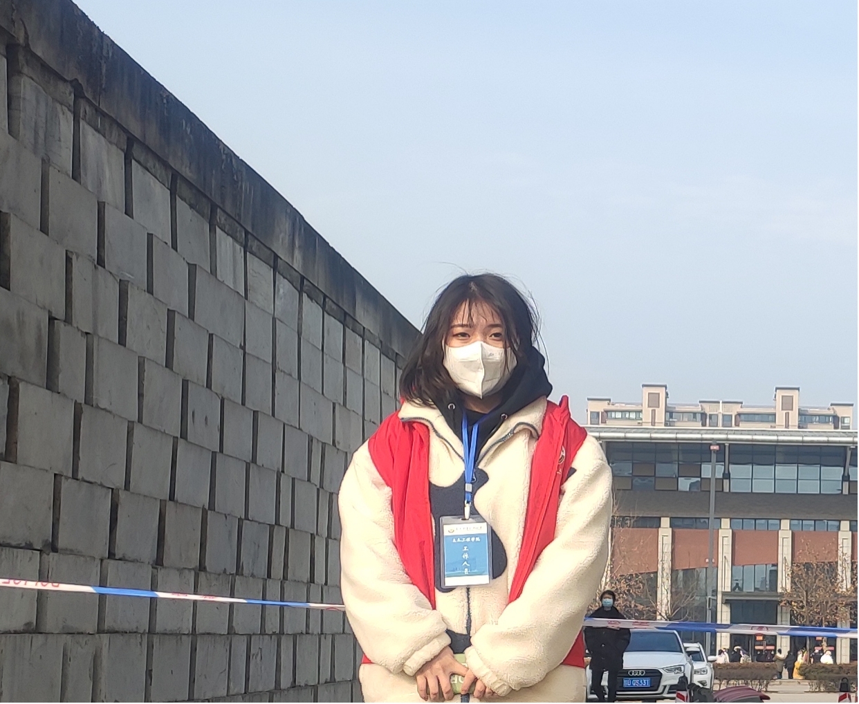 王云琦同学还在核酸期间主动报名成为一只“抗疫大白”踏着清晨的第一缕微光到达体育馆,帮助医生更快进行核酸采集工作,近六个小时穿着厚重的防护服,手往往会因为暴露在低温室外下变得有些僵硬,但依旧无法减弱她为同学服务的一腔热血。在后续的返乡志愿者中,王云琦同学也积极参与,放弃自己最早返家的机会,帮助大批建大学子顺利返乡。在众多志愿者中,她也只是一位普通的姑娘,但她认为,能够勤勤恳恳的做好自己的志愿工作,这样也很酷的。