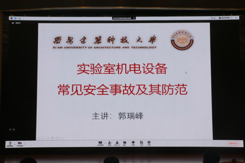 9月26日,机电学院教师郭瑞峰通过线上会议,为全体2021级研究生新生以讲座形式开展了实验室安全教育。郭瑞峰分别介绍了实验室的电气安全和机械安全,强调安全问题重于泰山,同学们要树立牢固的安全意识。
