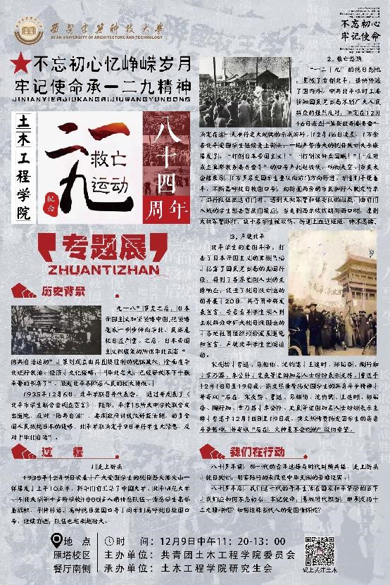 为更好地将这种爱国精神传承下去,在“不忘初心,忆峥嵘岁月 牢记使命,承一二·九精神”活动期间,雷竞技raybat竞猜特意制作专题海报,供同学们观看,全面了解一二·九运动。