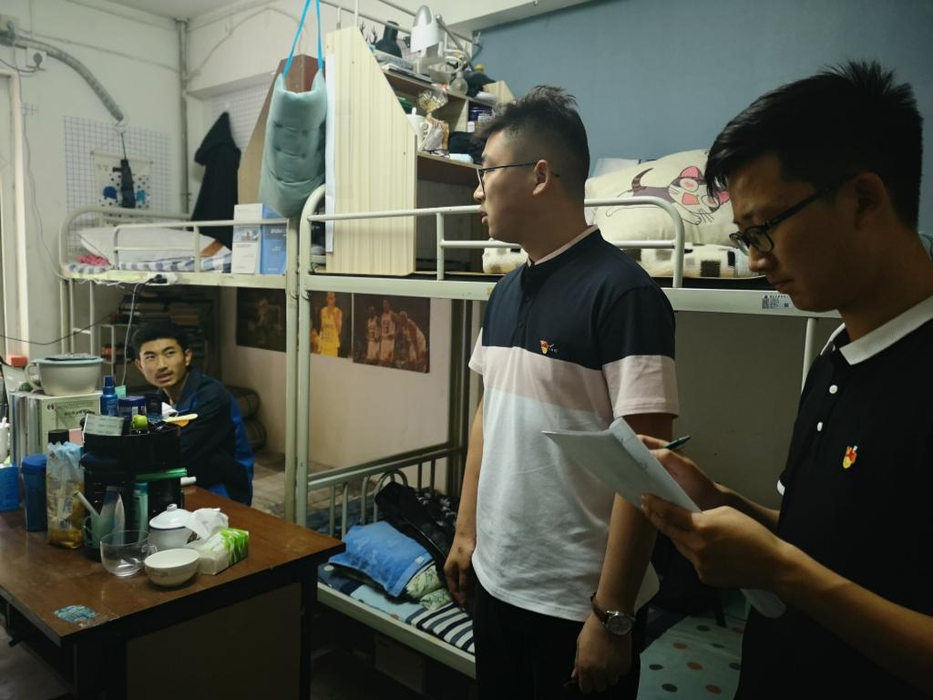 检查人员分成多个小组,分别对4栋、5栋内我院所属的学生宿舍进行了卫生和安全情况检查,重点查看了屋内线路及用电设备情况。检查发现,大部分学生宿舍都能够按照相关要求,做到环境整洁、安全用电,但仍有个别宿舍存在杂物较多、个人物品摆放混乱、宿舍垃圾处理不及时等问题。针对上述问题,检查人员当面指出,宿舍同学随即整改,切实做到各项问题及时发现、细小问题随即解决。