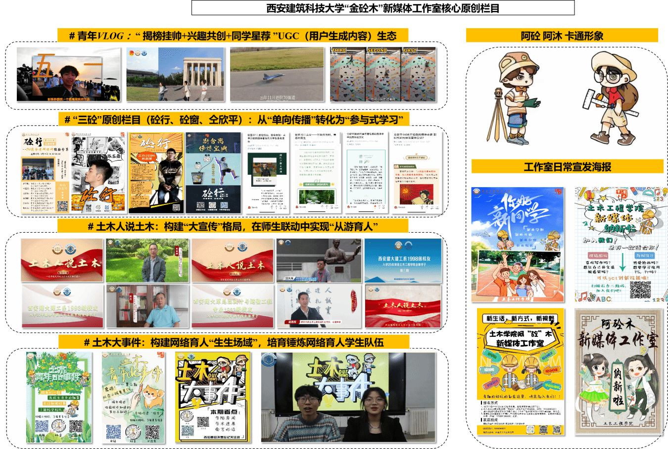 目前,工作室运营的“西建大土木人”“西建大土木青年之声”“砼心向党”三大微信平台覆盖师生18000余人,年均浏览量达6万人次,形成了“文创吸引—内容浸润—价值引领”的闭环育人生态,切实提升了二级学院网络思想政治教育的亲和力与实效性。