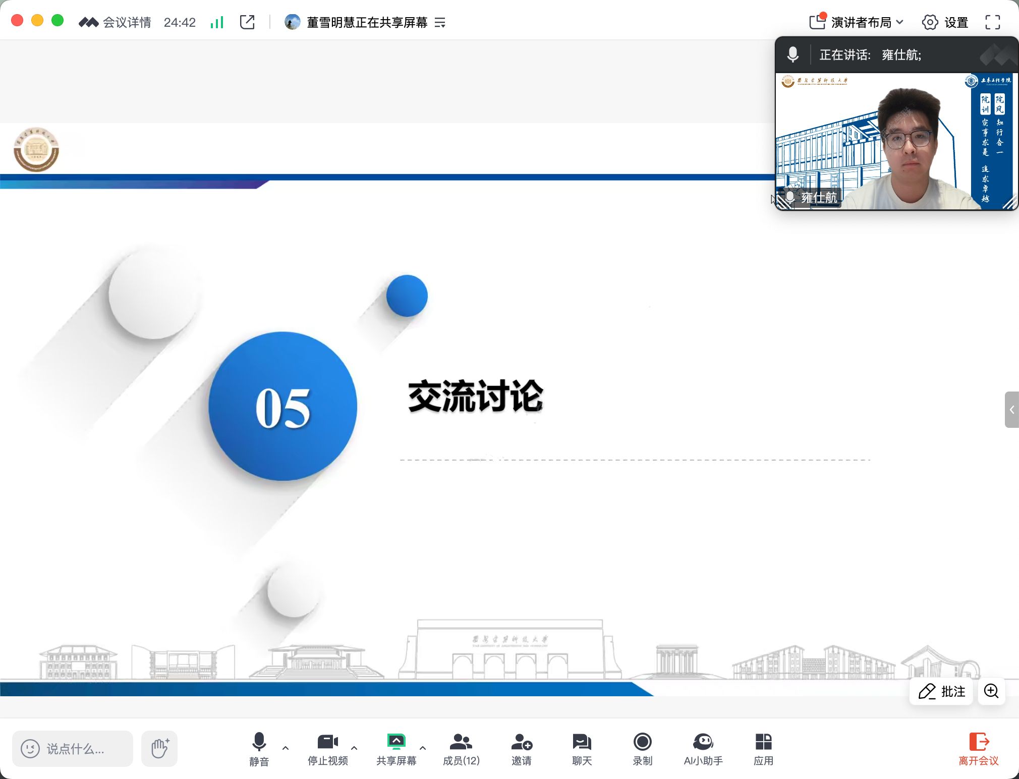 雍仕航就迎新工作具体安排进行了补充说明,并结合自身经历,就思路方法、工作模式等方面向新任朋辈导师传授经验、提出建议。