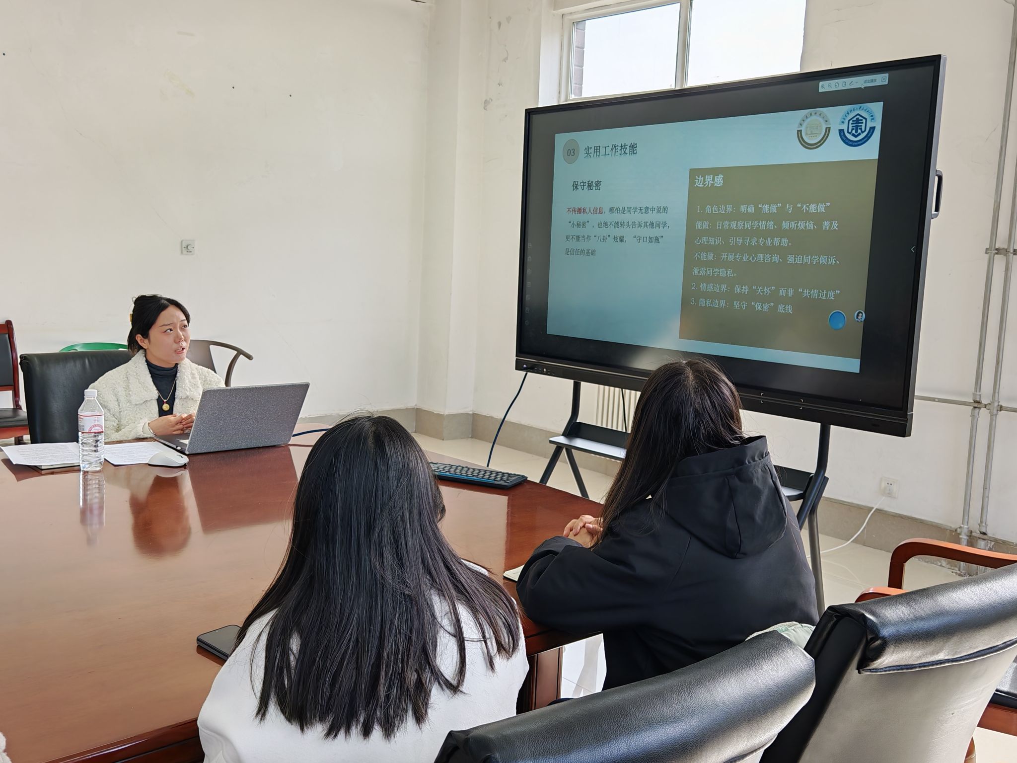 为深入贯彻学校关于大学生心理健康教育工作的总体部署,进一步夯实二级心理辅导站建设,提升班级心理委员的专业素养和履职能力,11月24日,“砼”心驿站二级心理辅导站联合南山2栋、南山7栋、南山12栋党员工作站共同开展2025年心理委员培训会。雷竞技raybat竞猜辅导员董雪明慧、校“十佳心理委员”刘一心同学及2025级心理委员参与此次培训。