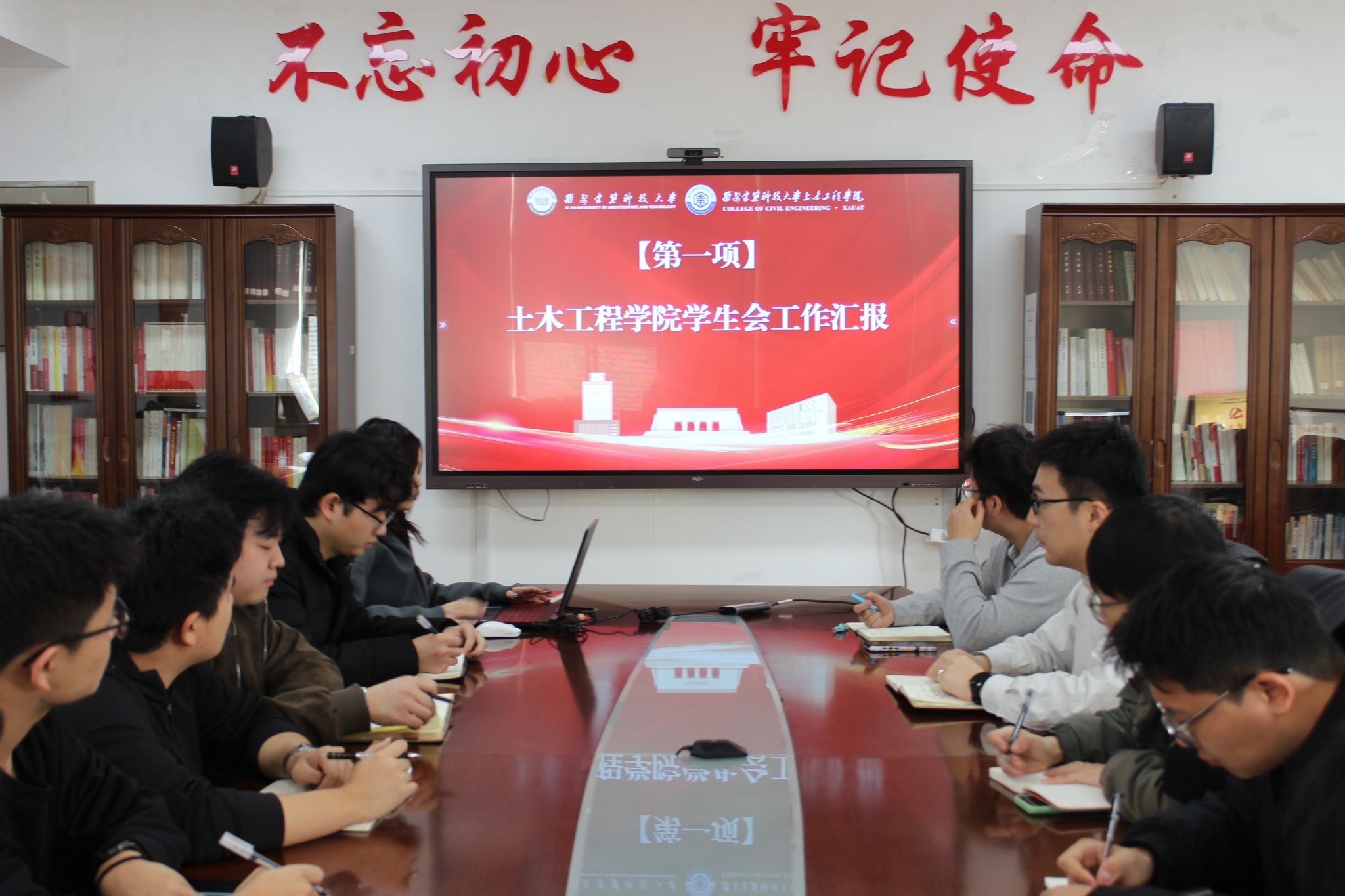 12月10日14时,学院第十八届学生会委员会、第十七届研究生会委员会第二次全体会议在雁塔校区土木楼310会议室召开。会议由学院学生会主席团成员姚宛孜同学主持,学院第十八届学生会委员会、第十七届研究生会委员会全体委员到场参会,学院团委书记綦玥,学生会、研究生会指导老师齐昱霖参加会议并发言。