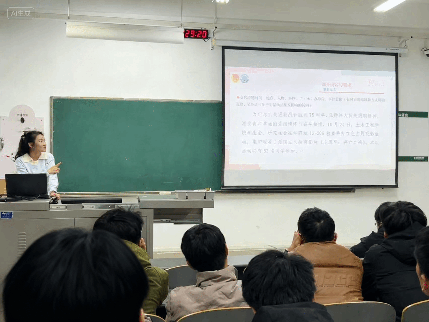 在讲解过程中,赵家伟还针对新闻撰写中常见的格式错误、称谓不当、标点误用等细节逐一说明,明确了投稿流程与图文编排规范。她提醒同学们在撰稿过程中注意信息核对、署名完整与审核程序,以维护宣传工作的严谨性与规范性。