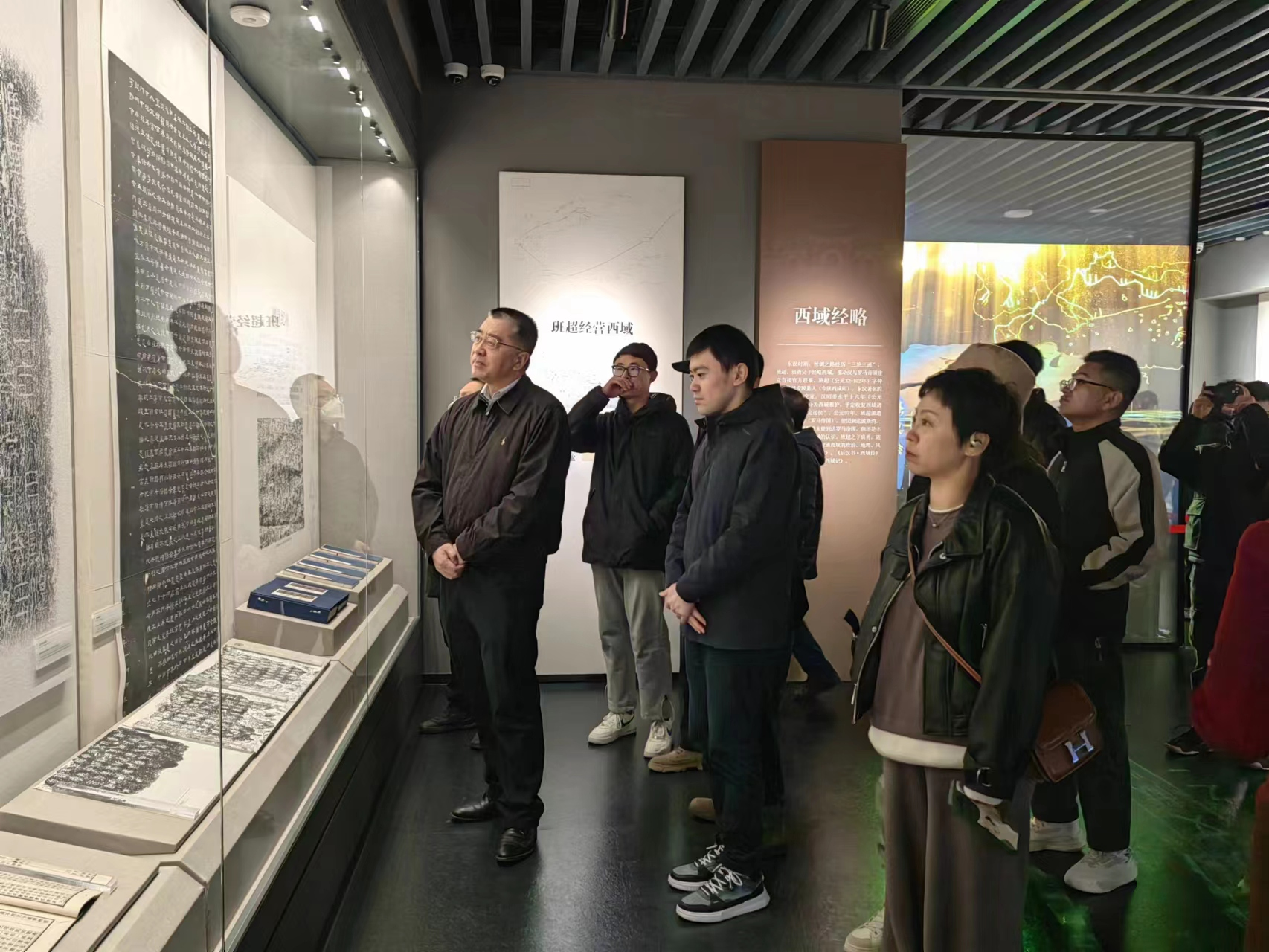 全体人员首先跟随着讲解人员走进了保藏中心的文济厅,这里有一面宽90米、高20米、近1800平方米的书墙静立在厅内,气势恢宏。文济厅是中国国家版本馆西安分馆最大的单体建筑空间,这里集中陈列着5万余册精品图书版本。全体人员还参观了以丝绸之路文化为主题的《楮墨遗珍万里同风——丝绸之路版本展》以及《赓续文脉踔厉前行——中华文化经典版本展(西部篇)》,两个常设展览独具特色,各类展品充分展现丝绸之路文明、中华文化的深厚底蕴。