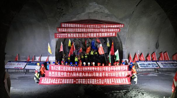 “月城凉山号”TBM被誉为“硬岩掘进机之王”,于2020年10月在大凉山1号隧道正式开始掘进,历时36个月。首创国内高速公路TBM日掘进49.12米,月掘进723.82米,6个月连续掘进3680米、12个月连续掘进6387米、18个月连续掘进8825米等多项全国纪录,提前6个月掘进至合同分界点,提前2个月实现平导贯通。大凉山1号隧道采用TBM施工平导较传统钻爆法施工缩短工期3年以上,不仅填补了国内同类型高速公路施工的技术空白,还将彻底改变国内公路隧道建设行业几十年来传统钻爆法施工方式,有效减少洞内施工人员,开启了隧道全机械化施工的新篇章,对我国公路隧道智能建造具有里程碑意义。