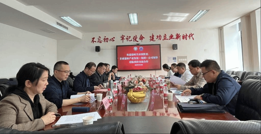 黄炜介绍了我校学科链群发展及近年科研工作的整体情况,总结了我校与嘉恒集团前期合作的成果。安进介绍了甘肃嘉恒产业发展(集团)有限公司的发展经营情况。此后,双方就合作领域、科技创新与成果转化、人才培养与人才引进等方面开展开讨论交流。