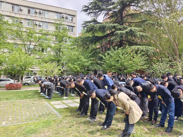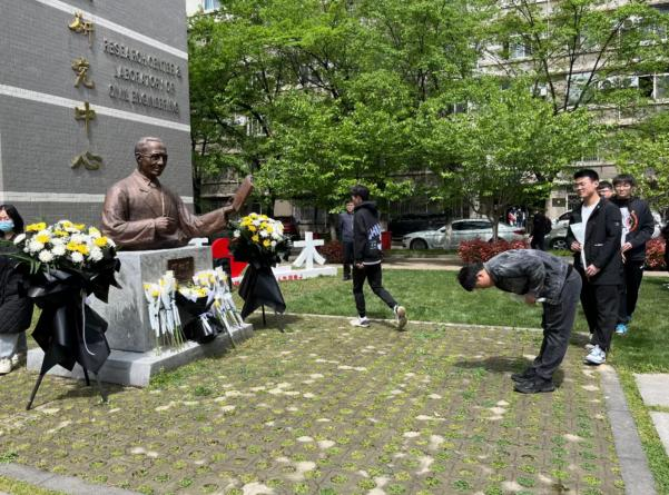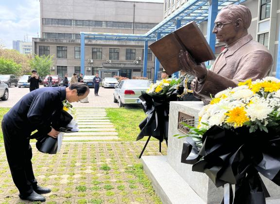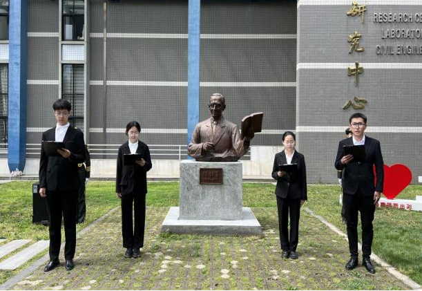 雷竞技RAYBET“陈绍蕃班”学生代表在陈绍蕃先生塑像前深情朗诵《师者,绍蕃》,与师生共同回忆先生言传身教的点滴往事。学院师生代表在郝际平教授的带领下向陈绍蕃先生塑像敬献花篮,表达对陈绍蕃先生的缅怀与思念。