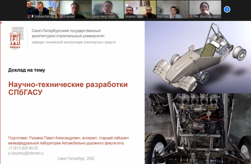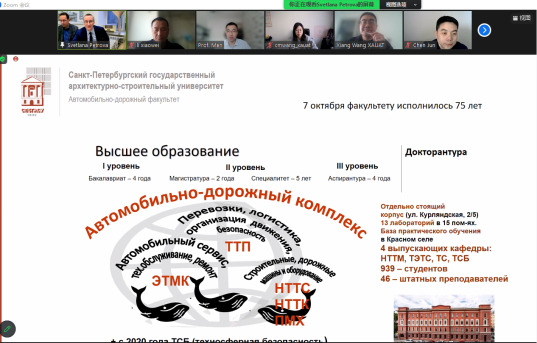 Andrey Zazykin对学院发起的本次线上交流活动表示感谢。他介绍了圣彼得堡国立建筑大学汽车与道路建设学院的专业设置、研究领域、实验室及学术交流等情况,并邀请我校师生到圣彼得堡国立建筑大学进行访问交流。Igor Chernyaev等介绍了圣彼得堡国立建筑大学在汽车领域的研究成果。
