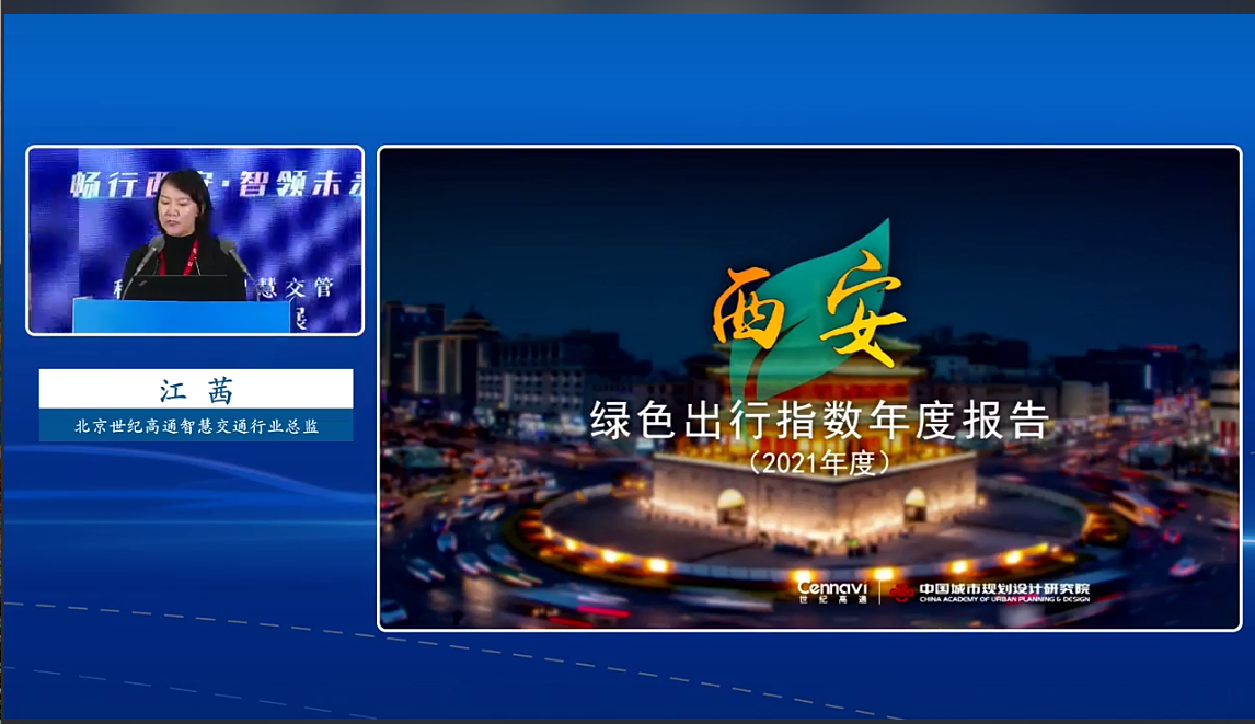 西安市公安局交通管理局副局长胡伟涛发布了西安市绿色出行评价指标体系,北京世纪高通科技有限公司发布了西安市绿出行指数2021年报告。