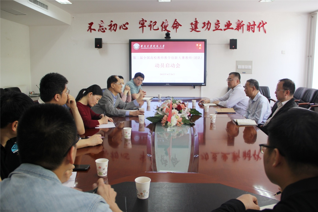 教务处处长肖国庆充分肯定了近年来我院在教学工作中做出的努力及取得的成绩,并对杨俊芬老师代表陕西省参加全国大赛表示祝贺,同时希望杨老师能在陕西省教育厅组织的集中打磨过程中,多向指导专家和其它高校同仁学习,展现建大青年教师的优秀风采。肖国庆表示学校将做好一切支持工作,希望杨老师全心全意备赛,力争取得优异成绩,为陕西省和学校争光。