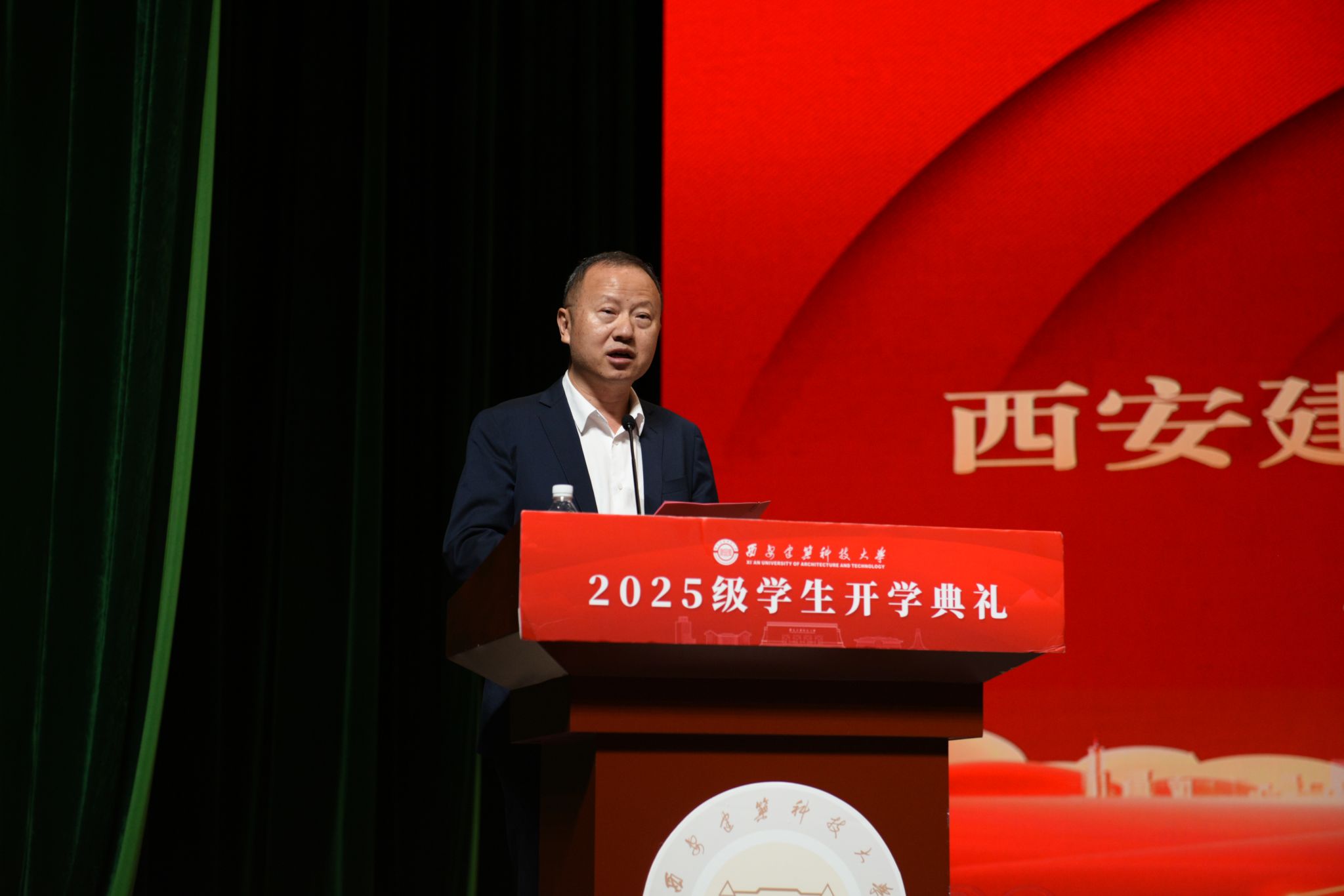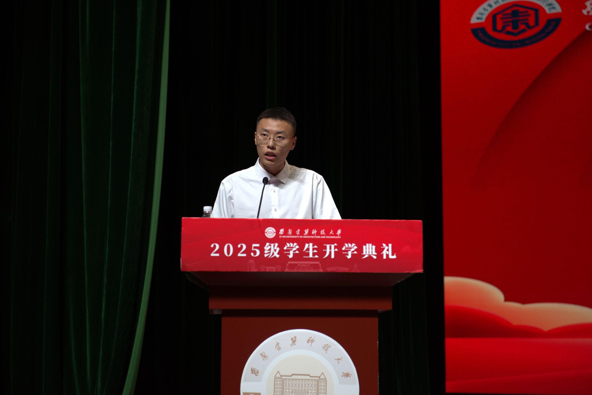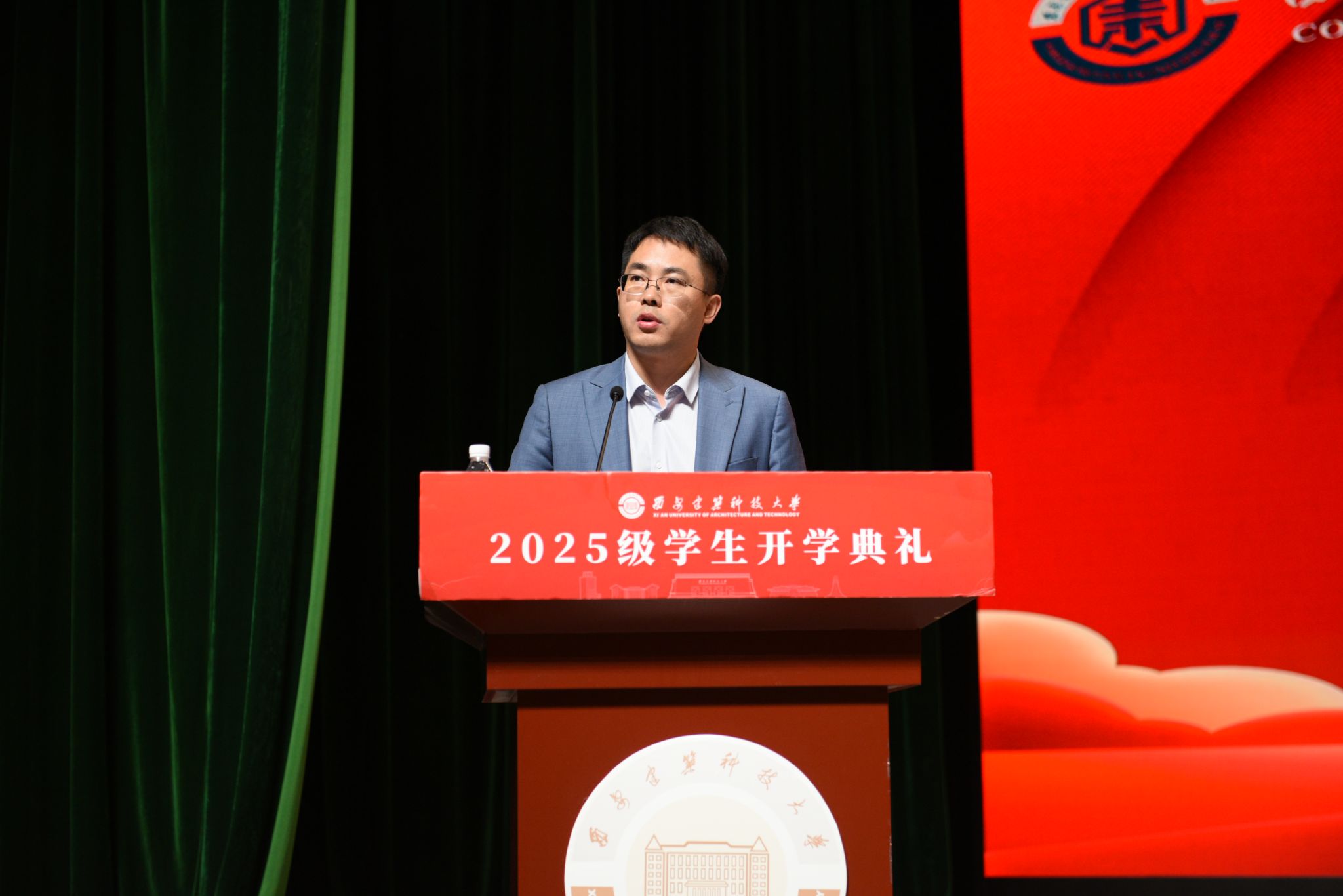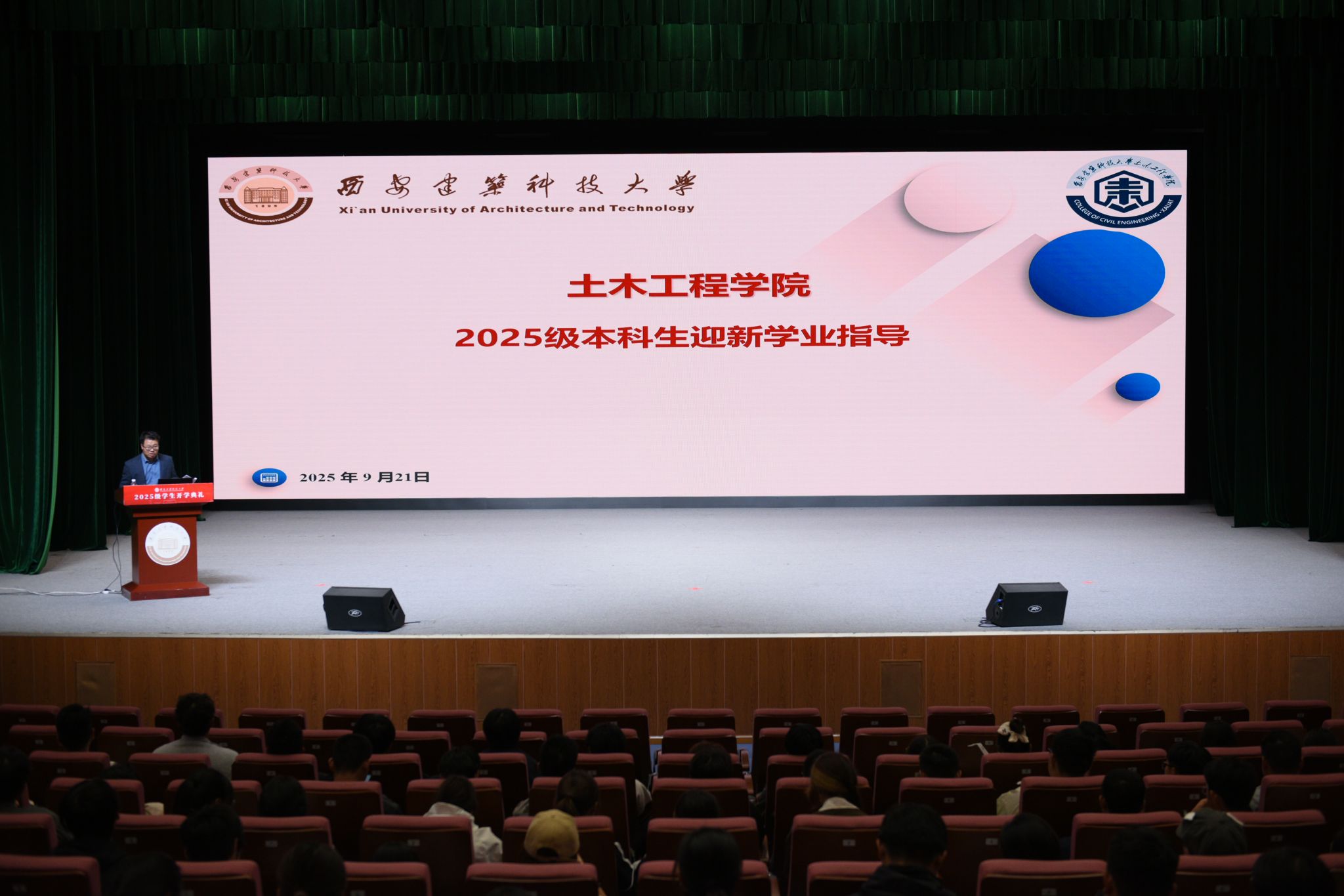 9月21日,我院2025级新生开学典礼暨新学期第一课在草堂校区紫阁大礼堂举行。学院院长薛建阳,中建四局西北公司人力资源部副经理李江波,中建四局西北公司基础设施分公司人力资源部经理白世鹏,党委副书记、副院长李路路,副院长门进杰,院长助理李安邦,国际教育学院辅导员武瑞英,学院各教研室支部书记、主任,学院机关各职能科(室)负责人,本科生学业导师、朋辈导师代表,各年级学生辅导员以及全体2025级新生参加了此次开学典礼。典礼由学生工作办公室主任屈鹏飞主持。