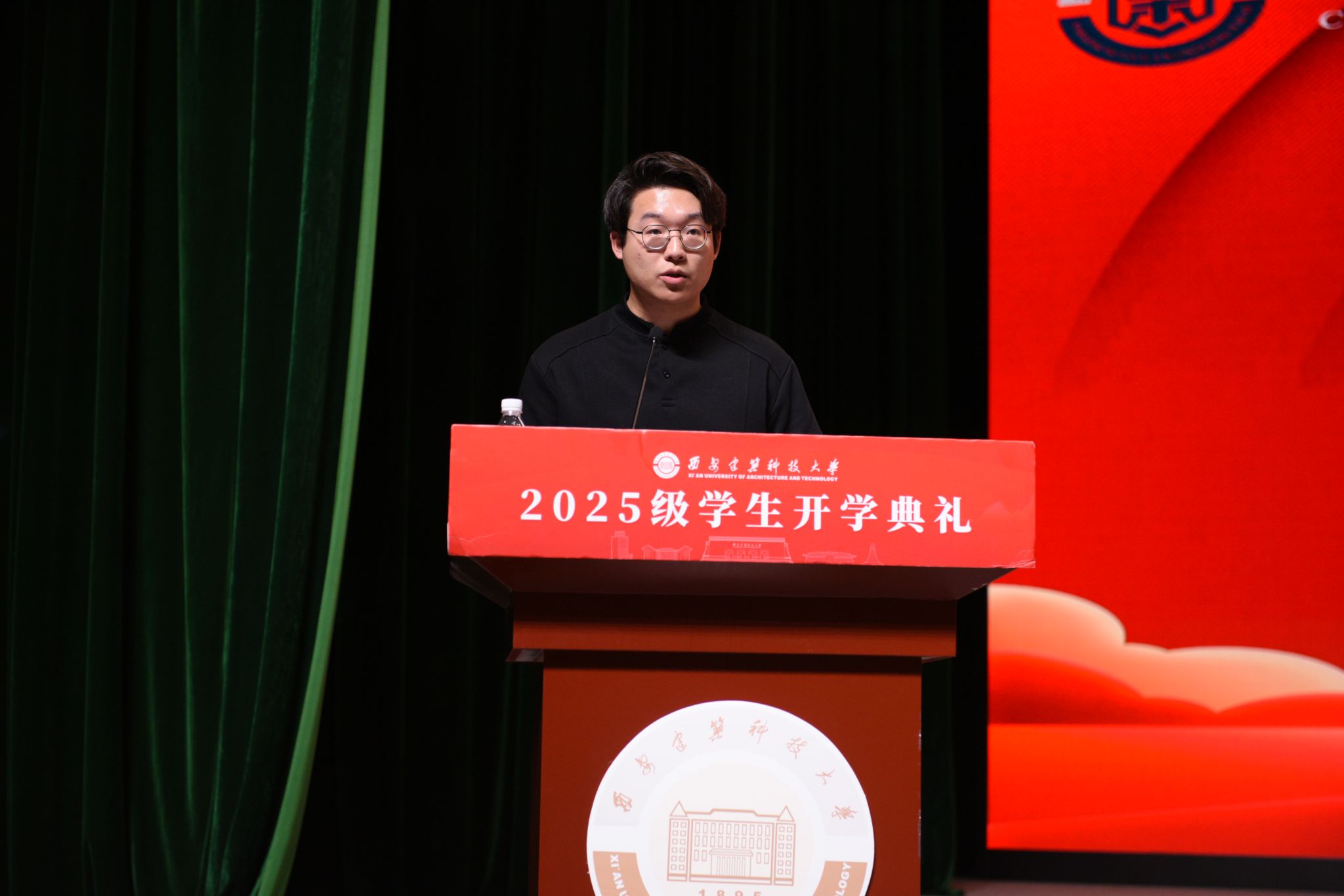 2025级本科生代表陈奕豪、2025级研究生代表崔航瑜、2025级留学生代表文美玲(萨尔瓦多籍 英文名:CASTRO GUILLEN WENDY MILAGRO)分别发言,表达了他们对大学生活的憧憬与决心,承诺将勤奋学习、积极进取,传承土木人的精神与担当。在校生代表袁子陈同学分享了自己的学习与科研经历,鼓励新生们勇于探索、敢于突破,在学术与人生的道路上不断前行。