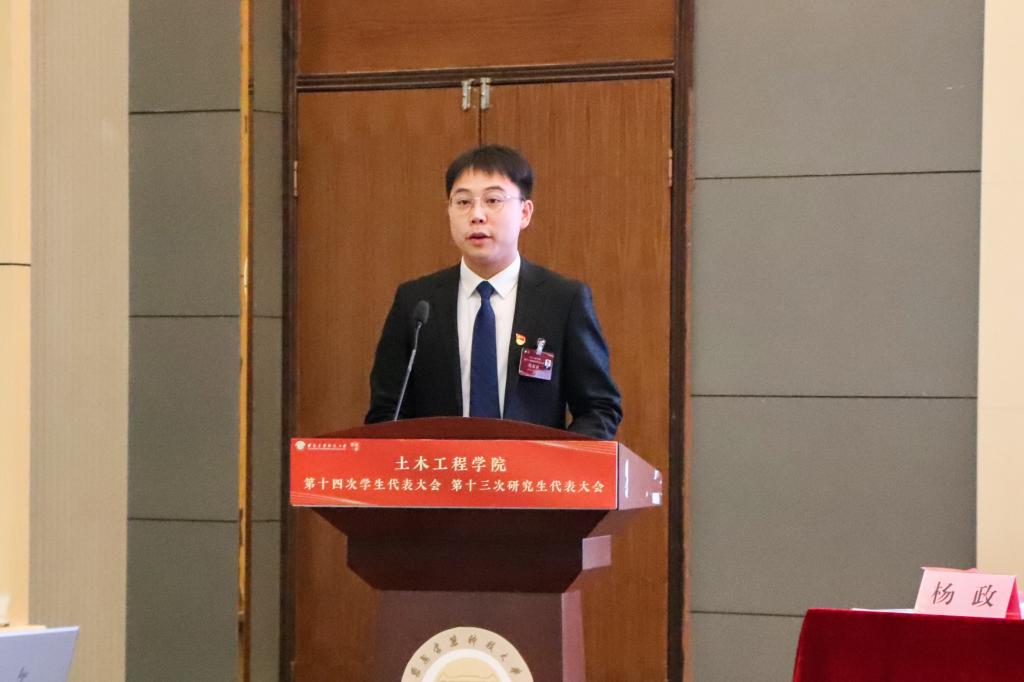 院研究生会主席杨政同学代表第十二届研究生委员会作了题为《不忘初心再出发,牢记使命共奋进,团结带领广大研究生在实现中华民族伟大复兴中国梦的新长征路上奋勇搏击》的工作报告。报告从“共同成长,力学笃行”、“以梦为马 逐梦前行”和“共创未来 携手同行”三个部分展开,在促进思想引领、推动组织改革、服务同学成长成才、聚焦校园权益、构筑宣传矩阵等多方面进行总结,分析了当前面临的新形势、新挑战和新机遇,明确提出了我院研究生会今后工作的工作目标和改革方向。