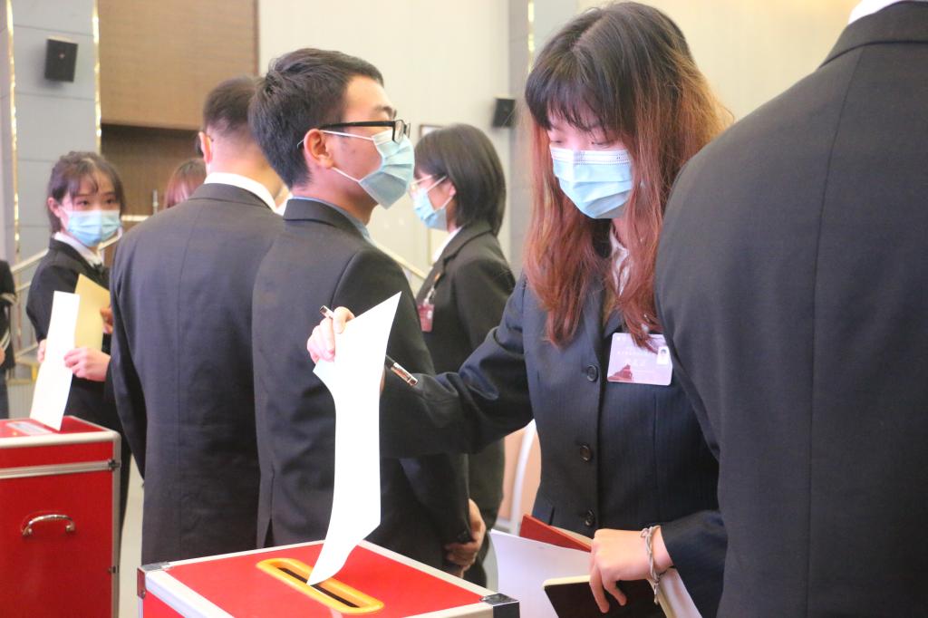 在大会总监票人肖云路的监督下,全体学生代表、研究生代表分别投票选举了新一届学生委员会委员、学生会主席团成员和研究生委员会委员、研究生会主席团成员。大会一并选举产生了raybet在线官网第十五次学生代表大会和第三次研究生代表大会学院代表。