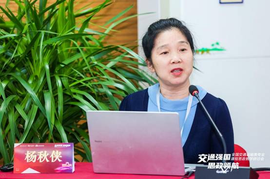 首都经贸大学党委书记韩宪洲、交通运输类教学指导委员会主任委员、北京交通大学教授张星臣、同济大学交通运输工程学院党委书记马万经、北京交通大学本科生院常务副院长房海荣、济南局人事部主任杜春虎、交通运输部规划院院长杨文银做了大会主题报告,分别从学校、学院、专业、课程、用人单位等层面分享课程思政的认识与思考。我院教师杨秋侠副教授在课程思政教学研讨分会场就课程思政元素切入点挖掘作演讲报告。杨秋侠分享了如何从专业课程的广度、深度,挖掘提炼专业知识体系所蕴含的思想价值和精神内涵,能体现该课程的温度,如何从专业所涉及的行业、国家、国际、文化、历史等角度,增加课程的知识性、人文性,提升思政价值引领,培养职业道德和规范。
