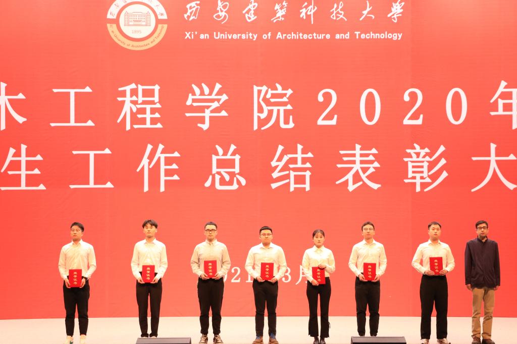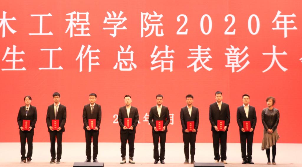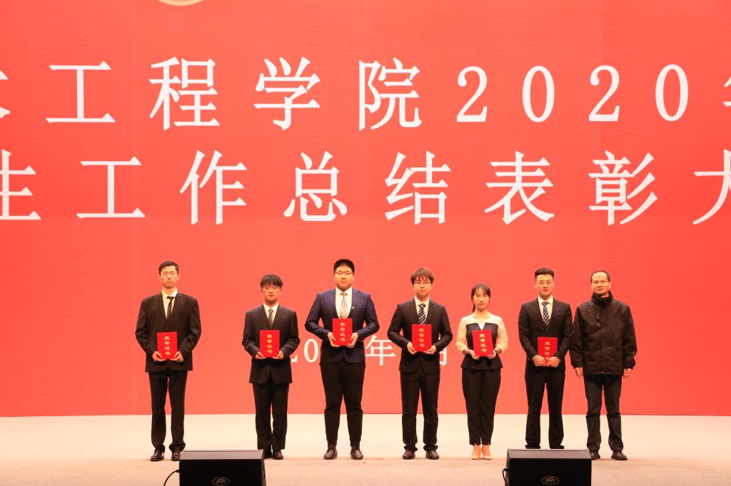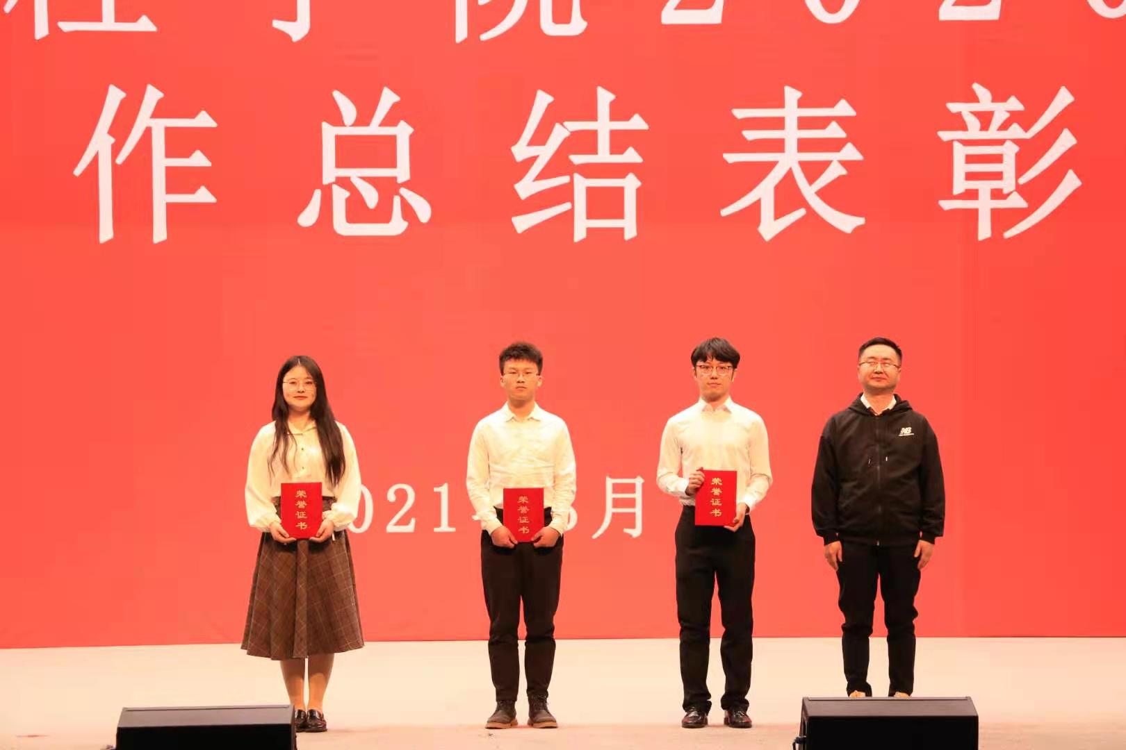 大会表彰了我院2020年度“创新创业先进个人”10人、“标兵个人”3人,“标兵宿舍”1个、“标兵班级”1个、“学风建设先进班级”13个,“优秀学生干部”6人、“优秀考研学习标兵”7人、“青年大学习优秀团支部”11个及“最美志愿者”15人。学院教工党支部书记为获奖集体及个人颁发证书并合影留念。