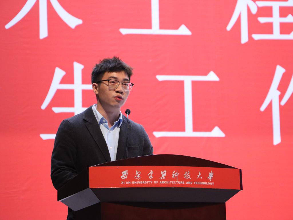 我院优秀学生代表交运1702班宋欣悦、土木1905班王志杰分别就自己的学习经验和科研思考进行了报告分享,教师代表戚亮杰结合自身专业兴趣培养与实践经历感悟,勉励同学们大学四年要懂得珍惜时间、奋发进取,自信乐观并力争上游。