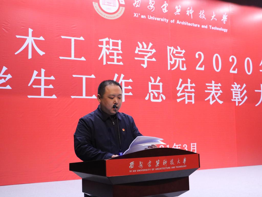 树榜样彰先进,严要求抓落实。为全面总结2020年度学生工作,积极部署推动2021年重点工作任务。3月30日18时,雷竞技raybat竞猜在草堂校区紫阁大礼堂召开了2020年度学生工作总结表彰暨2021年工作部署会。会议由学院团委副书记弓雪主持。