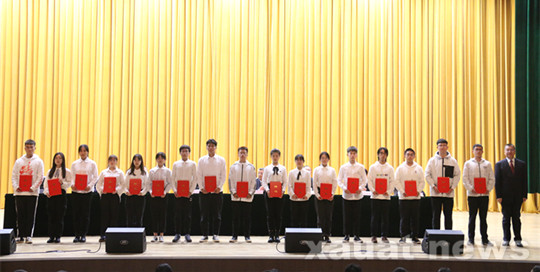 接着,在校学生代表2017级贾硕同学发言。他结合自身实践鼓励学弟学妹们要目光长远、脚踏实地,三观正、为人清,在成长的同时,不断丰富灵魂,坚持少年的干劲,绘写灿烂的青春。新生代表杜佳骐同学在发言中从提出,热爱祖国、砥砺奋进,积极向上等方面与同学们共勉,倡议同学们不辜负时代对土木人的重托,以新时代弄潮儿的身份砥砺前行。