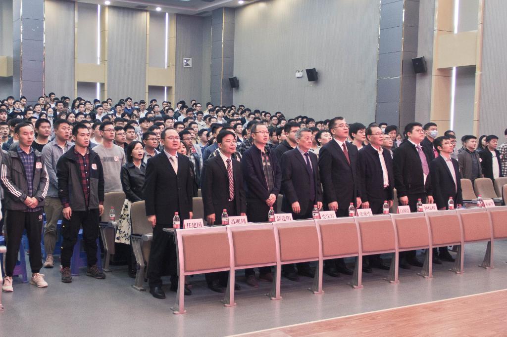 最后,全体师生齐声高唱校歌《高举着民族复兴的伟大旗帜》,典礼仪式在全场热烈的掌声中结束。