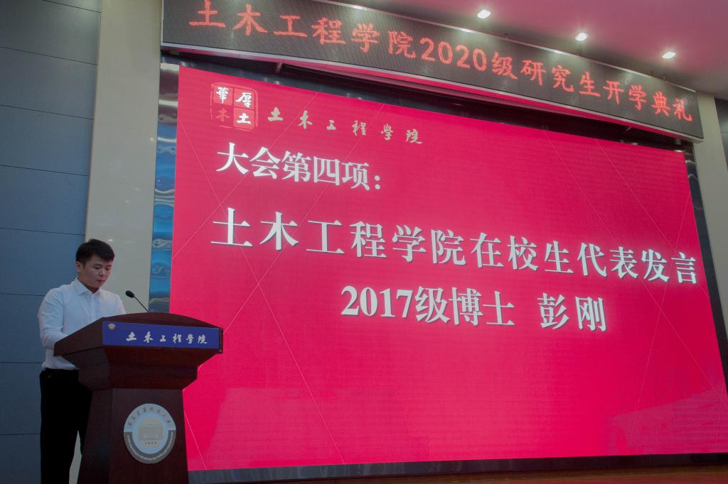 2017级博士研究生彭刚、2020级硕士研究生赵袆睿分别作为在校生代表和新生代表发言。
