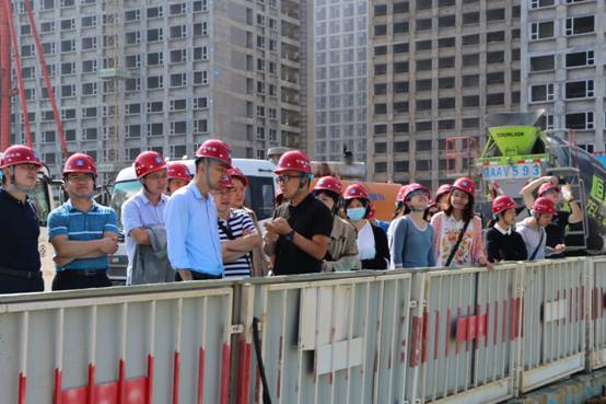 中国国际丝路中心大厦项目,总建筑面积38.32万㎡,建筑高度498m,地上100层,塔楼地下4层,项目建成后将成为中国西北第一高楼、大西安现代化形象的城市象征以及我国西部地区的国际化城市新地标。在项目工程部管理人员的引导下,我院教师分为3组有序进场,在现场专人的带领及讲解下依次观摩了智慧建造馆、党建馆、现场工地等展示区,对中建八局一公司的发展历史、企业文化、企业成果等基本情况有了更深入的了解。我院教师重点就现场施工管理、质量管控、技术创新、新技术新材料的应用等情况结合各自教学研究领域和中建八局一公司的工程技术人员进行了深入交流,双方就目前建筑行业发展势态展等问题开展了热烈讨论。