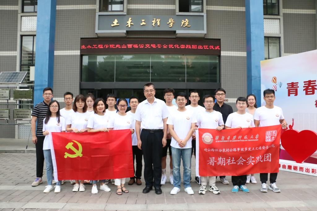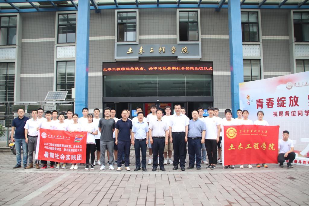 经过校团委组织的线上答辩,我院赴陕西省陕南、关中地区决战决胜脱贫攻坚,助力保障住房安全暑期社会实践团获得校级特别支持团队称号(全校共8支),赴山西临汾农村公路事故多发点交通安全优化暑期社会实践团获得校级重点团队称号(全校共22支)。7月12日,两支实践团分别举行了出征仪式,校党委副书记张志昌,党委学生工作部部长、学生处处长马宗方,我院党委书记张成中,党委副书记任建国,各实践团队指导老师及团队学生代表参加了出征仪式。
