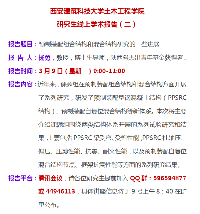 为保证在线教学顺利开展,学院各教研室积极组织,精心设计了授课方案,优化了课程过程管理和考核方式。各课程组均于课前通过雨课堂、超星、QQ群等网络平台发送PPT+语音课件及配套资料供学生预习,积极引导学生充分利用中国大学MOOC等平台的优质课程资源进行自主学习,并借助搭建SPOC平台在线授课及腾讯课堂等直播授课答疑方式,确保教学效果,在线课堂井然有序。特别是在疫情防控期间,学院举办系列在线学术报告会,白国良教授、杨勇教授等多位老师主讲的线上学术报告会顺利举行。