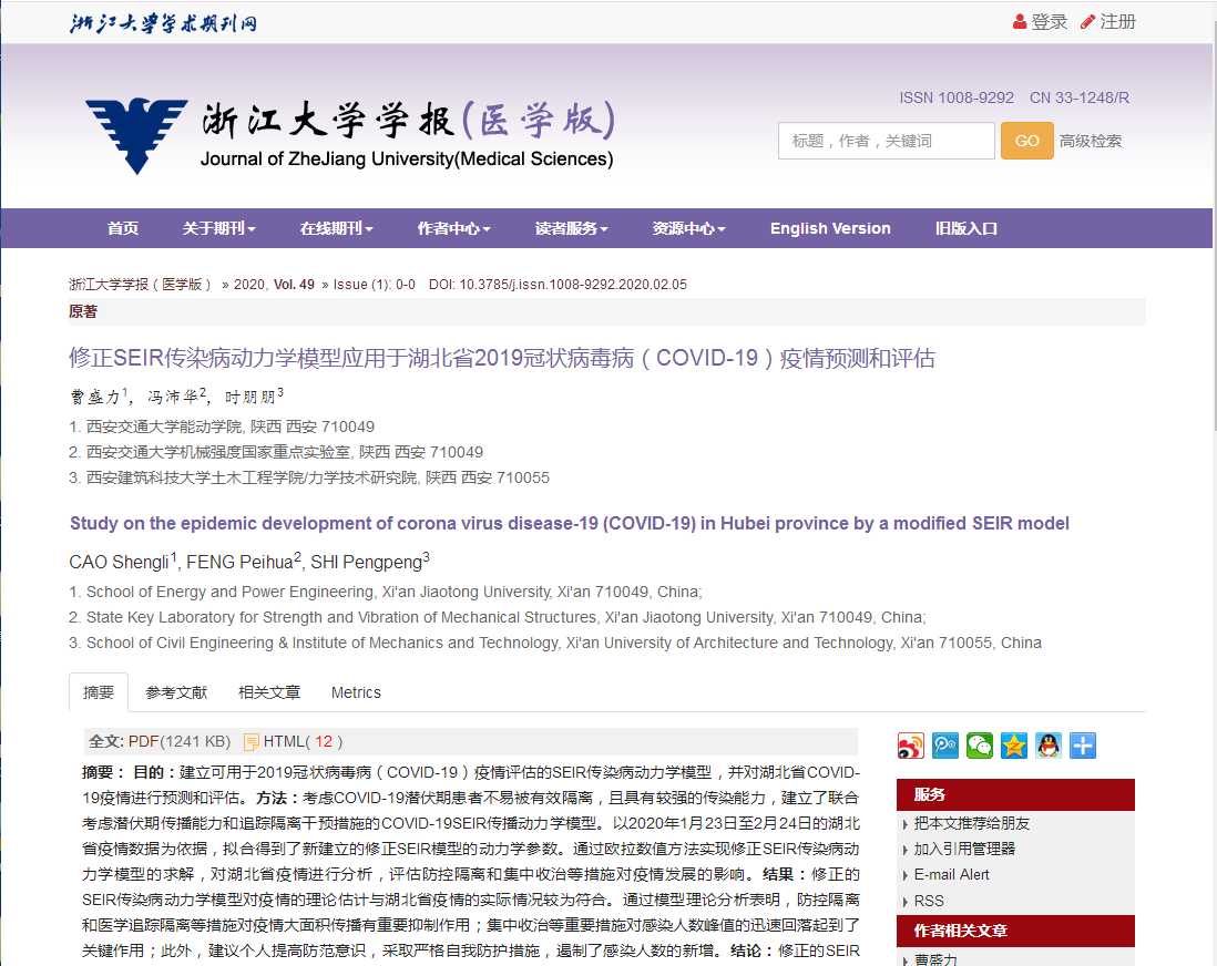 学院通过腾讯会议、钉钉等多种途径积极组织2020年度国家自然科学基金申请、陕西省科技厅指南建议征集、科技厅项目的结题等一系列科研工作,确保科研工作能有序的开展。我院时朋朋老师联合西安交通大学在抗击新型冠状病毒中利用自己的专业知识发表论文《修正SEIR传染病动力学模型应用于湖北省2019冠状病毒(COVID-19)疫情预测和评估》,为抗击疫情贡献自己的力量。