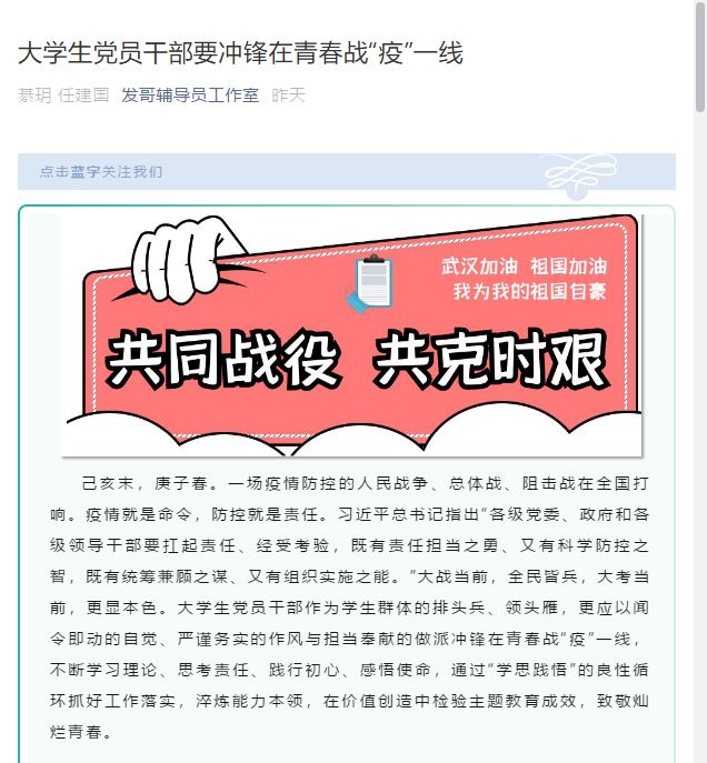 疫情就是命令,防控就是责任。新冠肺炎疫情发生以来,学院严格按照中省及学校的统一部署,在学校的统一指挥下,迅速响应、积极作为,坚持战“疫”与暖心并举,防“疫”与育人结合,用心用力用情守护每位师生的健康平安,用真情服务把疫情带来的考验转化为育人的实际动力,确保了各项工作的有序开展。