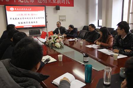 2019年12月27日上午,华南农业大学水利与雷竞技raybat竞猜党委书记徐添庆一行5人来我院开展调研,学院领导班子成员及机关部分科室负责人参加了座谈会。会议由学院党委书记张成中主持。