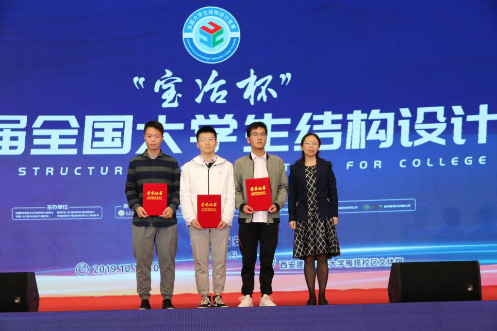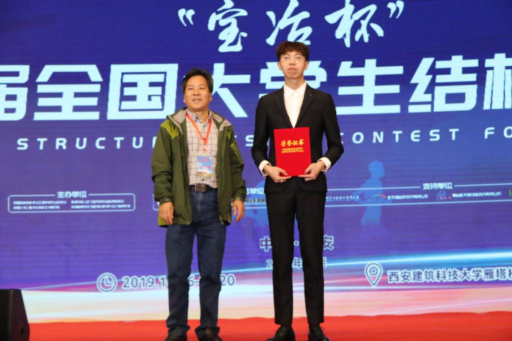 全国大学生结构设计竞赛委员会副秘书长丁元新为一等奖获奖同学颁奖