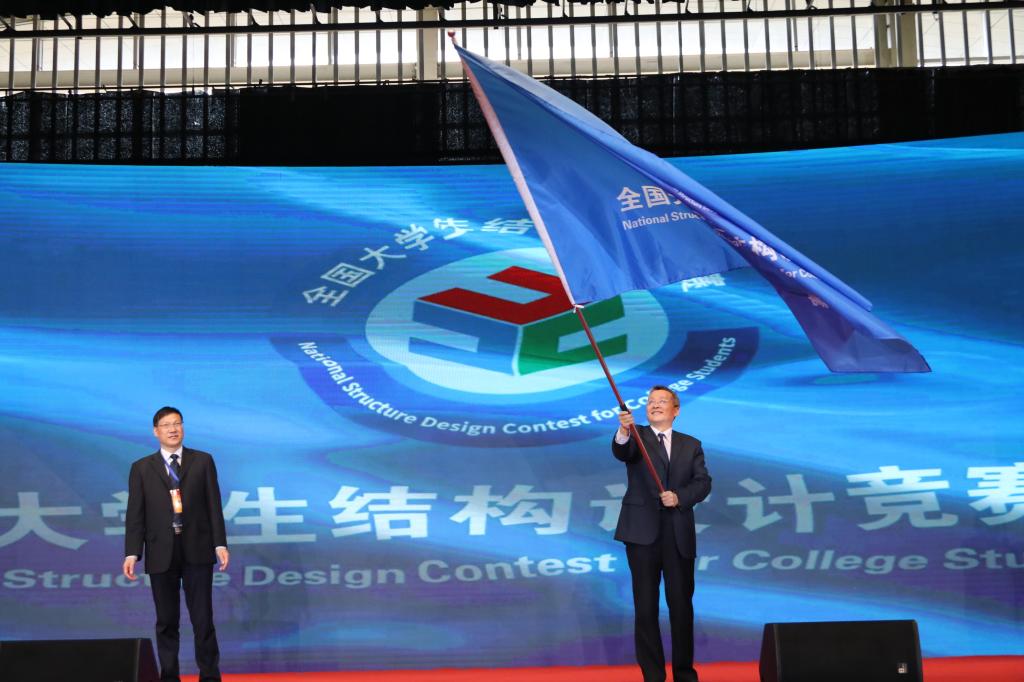 在全场的热切期盼下,校党委书记苏三庆、竞赛委员会秘书长陆国栋、省教育厅副巡视员孙建宁、竞赛专家委员会委员王湛、陕西土木建筑学会秘书长易凤华共同启动了竞赛徽标;陆国栋秘书长对徽标进行了说明,并与我校雷竞技raybat竞猜院长史庆轩进行了会旗交接。