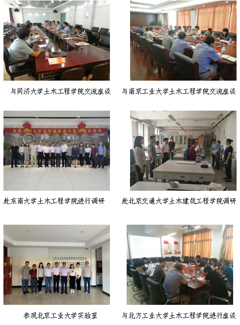 通过对多所高校进行调研,了解同行高校在人才培养、实践教学、实验平台建设等方面的举措和做法,学习先进经验,为学院的人才培养和学科建设提供重要的借鉴价值。副院长朱丽华、苏明周、钟炜辉特意就我院土木工程专业人才培养方案的基本思路、毕业生考核要求与方式进行了汇报分享,并与相关专业负责人充分交流了意见。6所高校均表达了希望今后在人才培养、学科建设、人才交流、实验室建设等方面与我院加强合作与交流。
