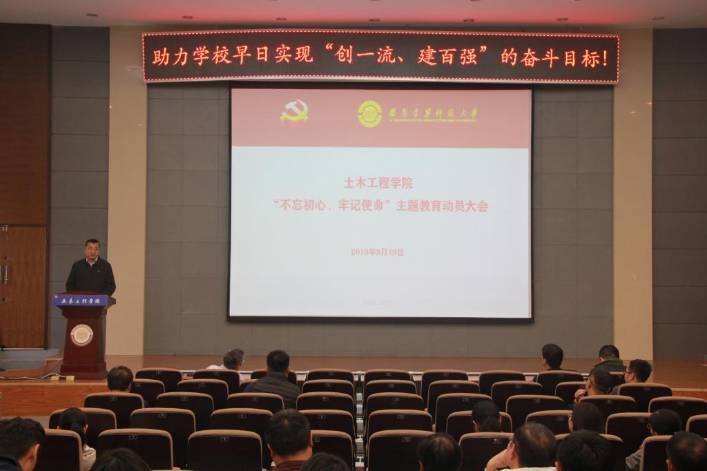 9月19日下午,雷竞技raybat竞猜在雁塔校区土木楼516报告厅召开“不忘初心,牢记使命”主题教育工作会议暨2019-2020学年第一学期教职工大会。学院全体教职员工参加了会议。校科技处处长刘艳峰、科技处科技项目部陈瑜思老师应邀参加会议。学院党委副书记任建国主持会议。