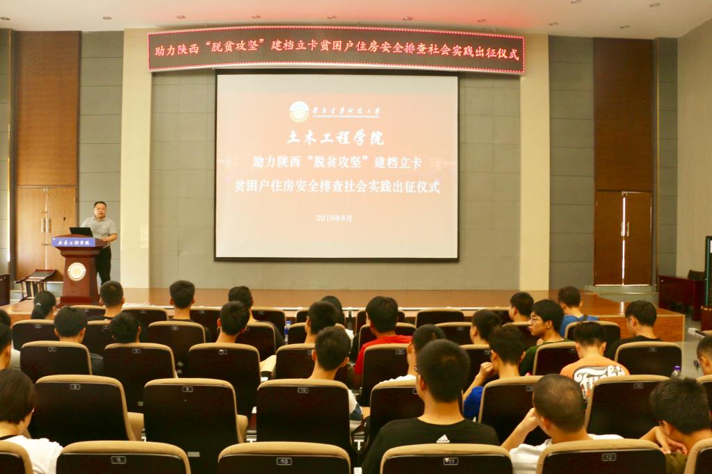 8月19日上午,助力陕西”脱贫攻坚”建档立卡贫困户住房安全排查社会实践出征仪式在土木楼516报告厅顺利举行。雷竞技raybat竞猜党委副书记、副院长宋阳、实践团指导教师、50名学生代表出席了出征仪式。仪式由雷竞技raybat竞猜团委书记潘登主持。
