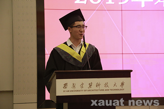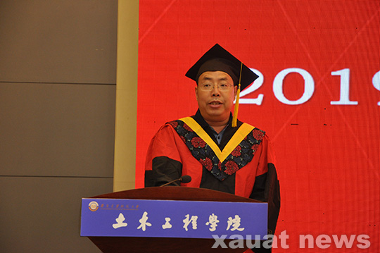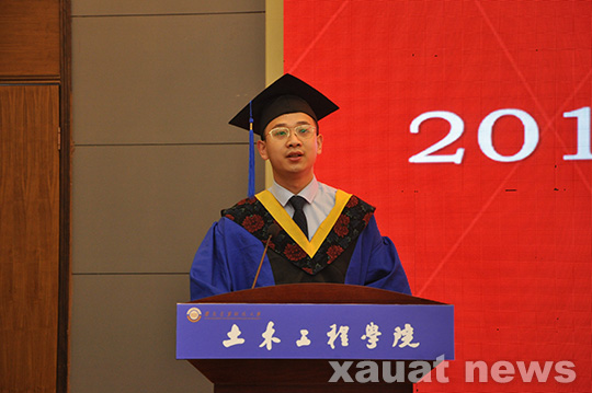 教师代表岩土工程实验室主任宋战平老师,交通运输工程系党支部书记、副主任李锐老师,学生家长代表宋代春先生,研究生代表2017-2018届研究生会主席王凯同学、2017-2018届本科生会主席刘鑫同学在毕业典礼上发言。