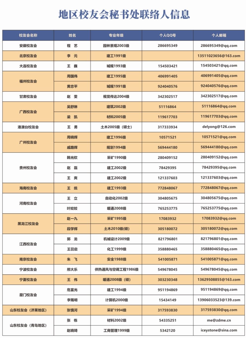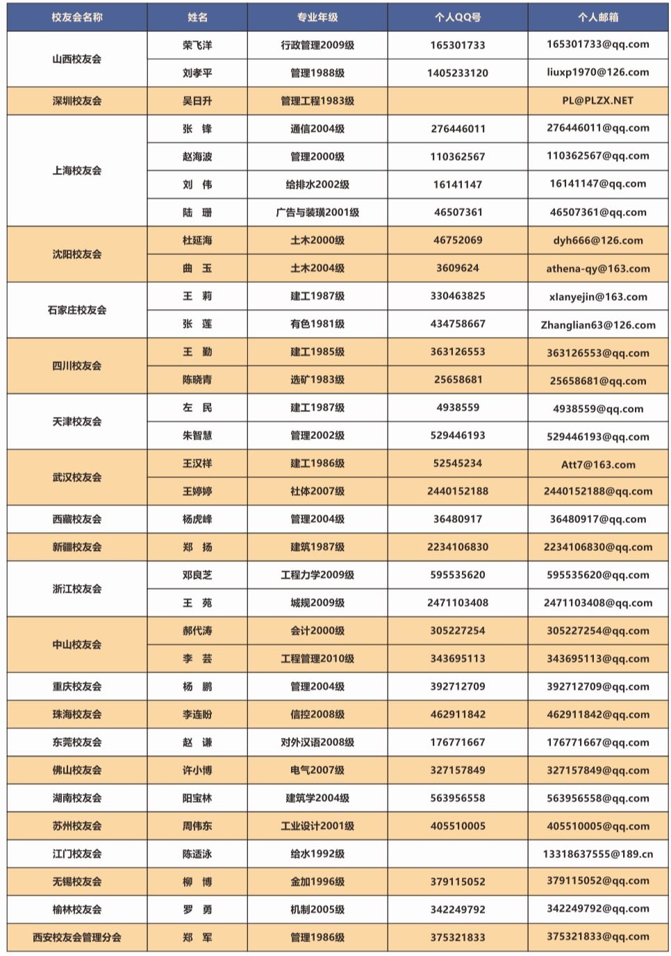地区校友会秘书处联络人信息发布!