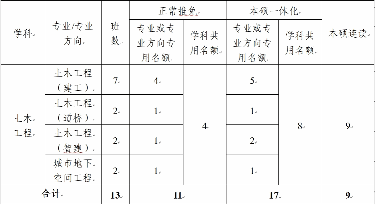 学院根据学校下达的推免指标,综合考核各专业(土木工程根据专业方向)学生人数、通过本硕一体化中期考核人数、学业情况等,雷竞技raybat竞猜2025年各类推免名额分配如下:
