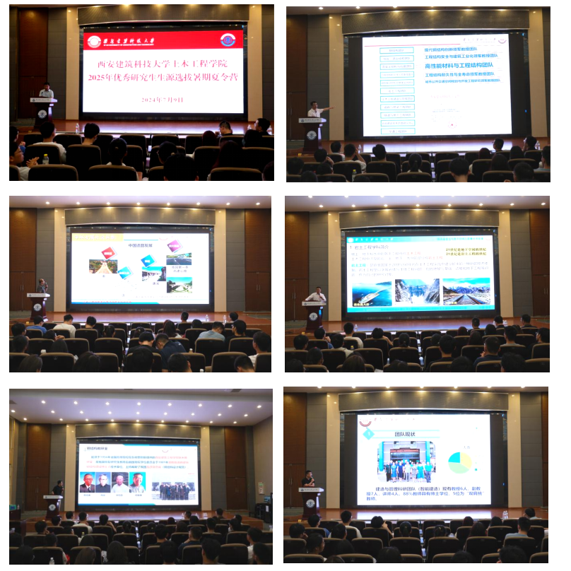 7月9日下午,雷竞技raybat竞猜2025年优秀研究生生源选拔暑期夏令营开营仪式在土木楼516报告厅举行。学院副院长苏明周主持开营仪式,各学科方向负责人、骨干教师,来自沈阳建筑大学、兰州理工大学、青岛理工大学、河南科技大学、西安理工大学等全国14所高校的51名优秀大学生参加此次夏令营活动,开启为期两天的夏令营之旅。