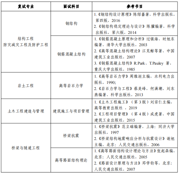 通过面试方式进行。学术型博士考生的考核科目见表2。专业学位博士考生的专业基础测试内容参照学术型博士考生执行。